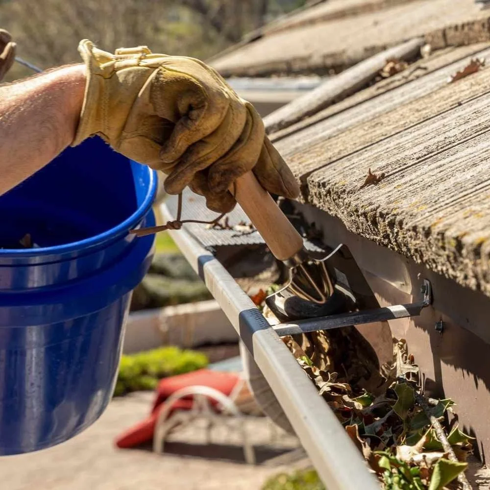 Handmatig verwijderen van vuil, bladeren en ander afval uit de dakgoot met behulp van gereedschap zoals schrapers, borstels en emmers.